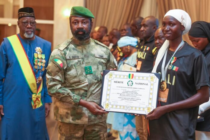 Le mardi 14 janvier 2025, le palais de Koulouba a accueilli une cérémonie hautement symbolique présidée par Son Excellence le Général d’Armée Assimi GOÏTA, Président de la Transition, Grand Maître des Ordres nationaux. À l’honneur, l’équipe nationale de basketball des moins de 18 ans, filles et garçons, décorée pour leurs performances exceptionnelles lors du dernier Championnat d’Afrique.