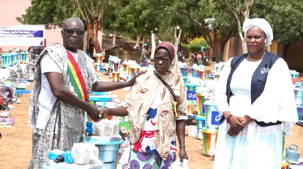Pour venir en aide aux nombreux ménages victimes d’attaques terroristes et qui ont trouvé refuge dans la ville de SAN, Catholic Relief Services vient de leur offrir des kits ménagers et des kits d’abris.
