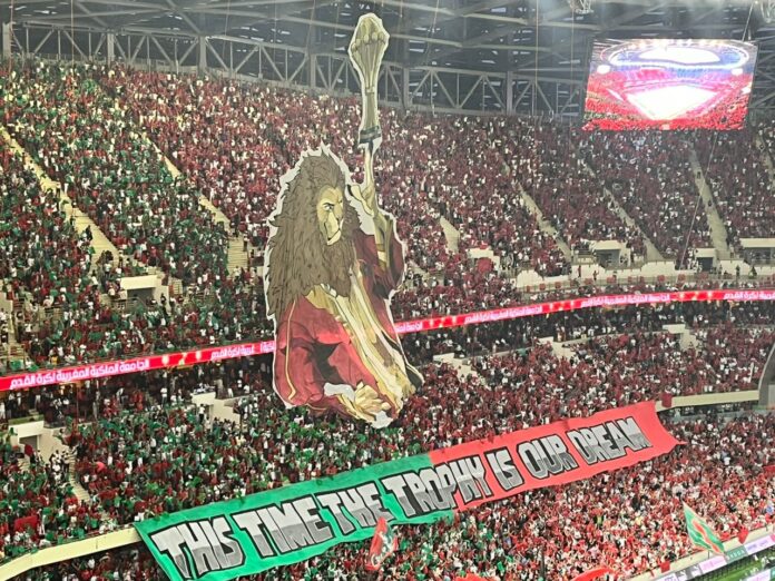 Dans ce stade Prince Moulaye Abdellah de Rabat, inauguré la veille par le Prince héritier Moulaye Hassane, les supporteurs marocains à travers ce message appellent les Lions à capitaliser sur leur parcours inédit à la dernière coupe du monde, où, elle a réalisé ce qu’aucune équipe africaine n’avait encore réalisé, se hisser dans le dernier carré de la compétition.